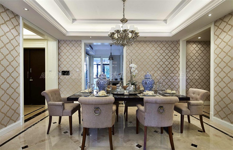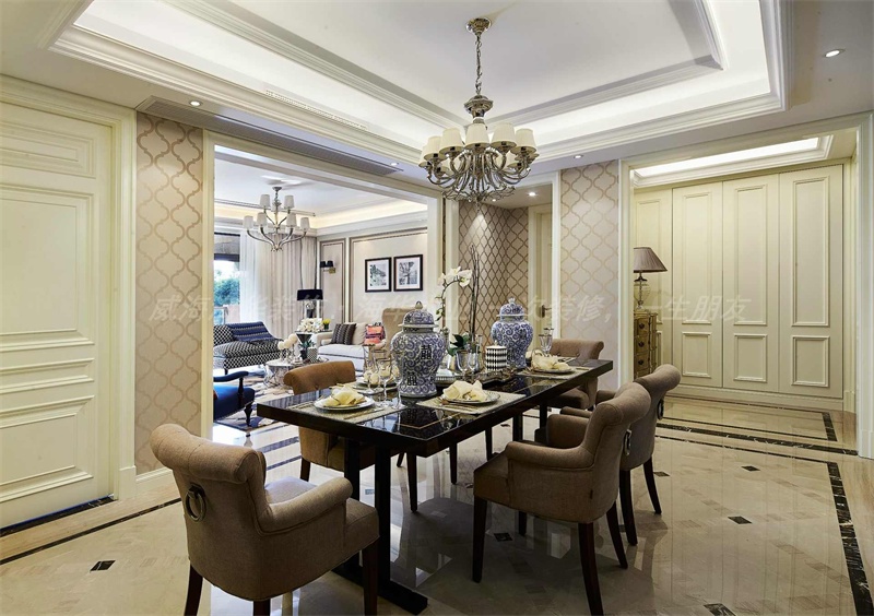 2、 本案講究的是美觀大氣,注重生活品質(zhì),氣派端景營(yíng)造隆重的迎賓效果,在入口處便產(chǎn)生美好的心情感受。在設(shè)計(jì)中本案保留了歐式風(fēng)格中的傳統(tǒng)造型,結(jié)合墻面的裝飾,家具的搭配和室內(nèi)飾品的陳設(shè),在空間里特別強(qiáng)調(diào)點(diǎn)線面的相互構(gòu)成,無(wú)論是空間的表現(xiàn)語(yǔ)言上,還是裝飾元素上,每一處細(xì)節(jié)都展示著奢華。 因此在該設(shè)計(jì)上更多地表達(dá)了貴族情結(jié),以及現(xiàn)代的工藝材料與表現(xiàn)手法賦予了該室內(nèi)空間時(shí)尚的面孔。